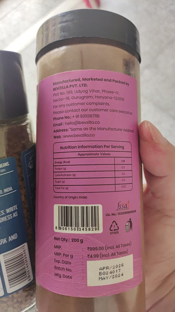 Ans. No, there are no preservatives in Bevzilla Instant Coffee Powder.